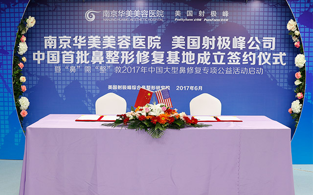 “中国首批鼻整形修复基地”落户南京华美,“整”救你的不美丽。近日,由美国射极峰综合鼻整形研究院主办的“中国首批鼻整形修复基地成立签约仪式”在南京华美美容医院隆重举行。
