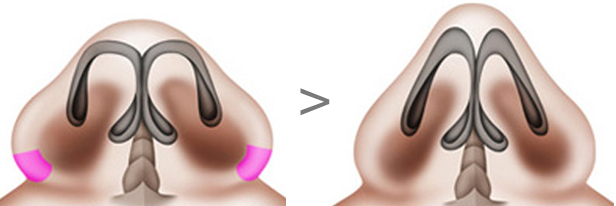 鼻翼肥厚宽大主要是由于鼻底部宽大或鼻孔较大,同时伴有鼻翼下垂。鼻翼缩小手术可以去除多余的组织,使鼻基底部缩窄、鼻孔缩小,是鼻综合整形手术中获得立体精致鼻型的重要步骤。