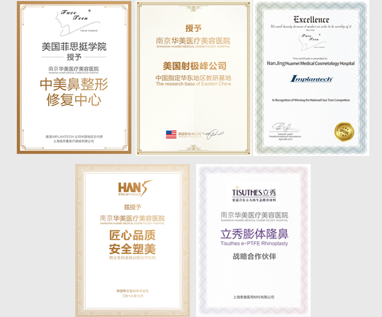 南京华美医疗美容医院拥有7+1国家专利技术,能够开展技术难度大的鼻综合整形及隆鼻失败修复手术。拥有高技术,高审美的医生团队,能够将鼻部美学和面部美学相结合进行更全面综合性的设计,打破只追求鼻部高度的偏见,打造鼻面部和谐!与众多假体品牌建立合作关系,让每个求美者都能放心变美。