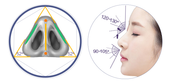 52°角被誉为世界上最稳定的角,华美根据求美者的鼻部基础,结合埃及金子塔建筑学原理,重建稳定鼻部支架,从而实现鼻翼、鼻尖、鼻梁的整体改善。