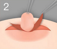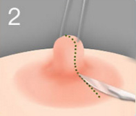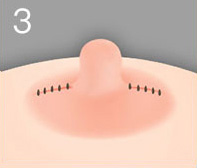 把位于乳头底侧,将乳头向下拉的坚硬纤维组织去除