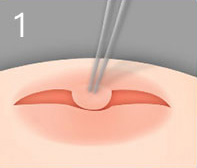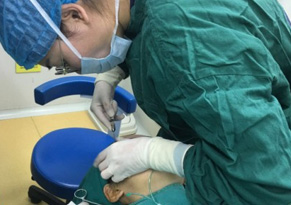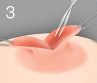 在乳头周边做局部 麻醉之后把乳头两 侧切开