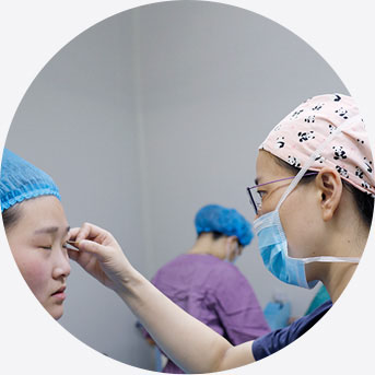 高倍显微镜下精细操作每一例重睑手术,上百次调整无影灯,精确观察眼部微小组织走向。采用华美专利微创缝合技术,每隔1mm结线精细缝合。