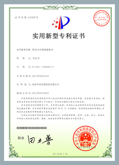 华美分层吸脂紧肤术已获得国家专利技术称号