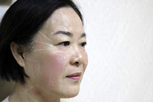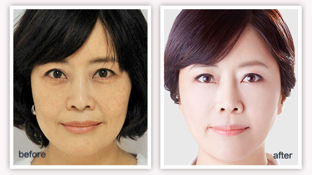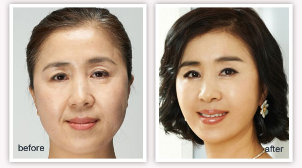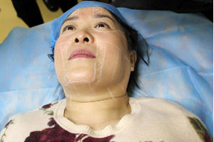 收紧松垮的眼周皮肤、两颊皮肤、下垂的下巴皮肤。