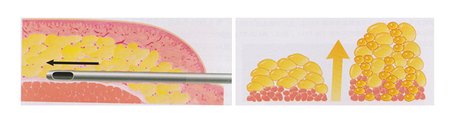 钝退针注射、结构脂肪注射:注射的脂肪组织更易被原 组织包裹,每个通道移植的脂肪组织都能跟受区组织结 合,脂肪更易生存、更好塑形,效果更自然,快速变美 丽。