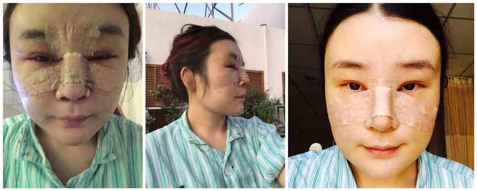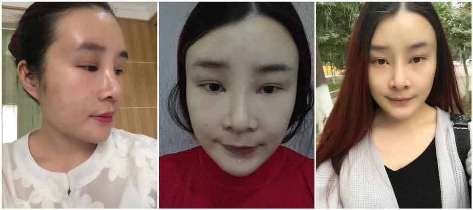 此次全面部改造的手术项目很多,于是分了两次完成,先做了综合隆鼻手术和开内眼角,再做了全面部脂肪填充。因为融月的眼部基础较差,上睑下垂严重,医生考虑到她的情况特殊,为此特意加做了眼部的脂肪填充,这样一来,如果以后想做双眼皮加宽手术,效果就会更好。