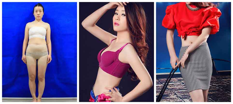 以前融月来华美做过全身塑形,包括针对腰部、腹部、大腿部这三个脂肪大量堆积的区域,采取分层吸脂紧肤手术;肌肉发达的小腿部位,通过注射肉毒素瘦腿;因松弛下垂而显肥胖的胳膊,采取VelaShape进行针对性治。这是手术前后的对比图。
